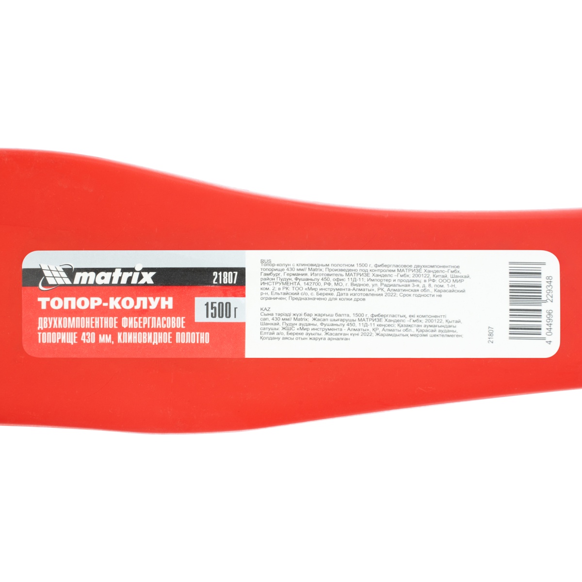Купить Топор-колун с клиновидным полотном 1500 г, фибергласовое двухкомпонентное топорище 430 мм Matrix V7213 по лучшей цене с доставкой - интернет магазин №1 в России