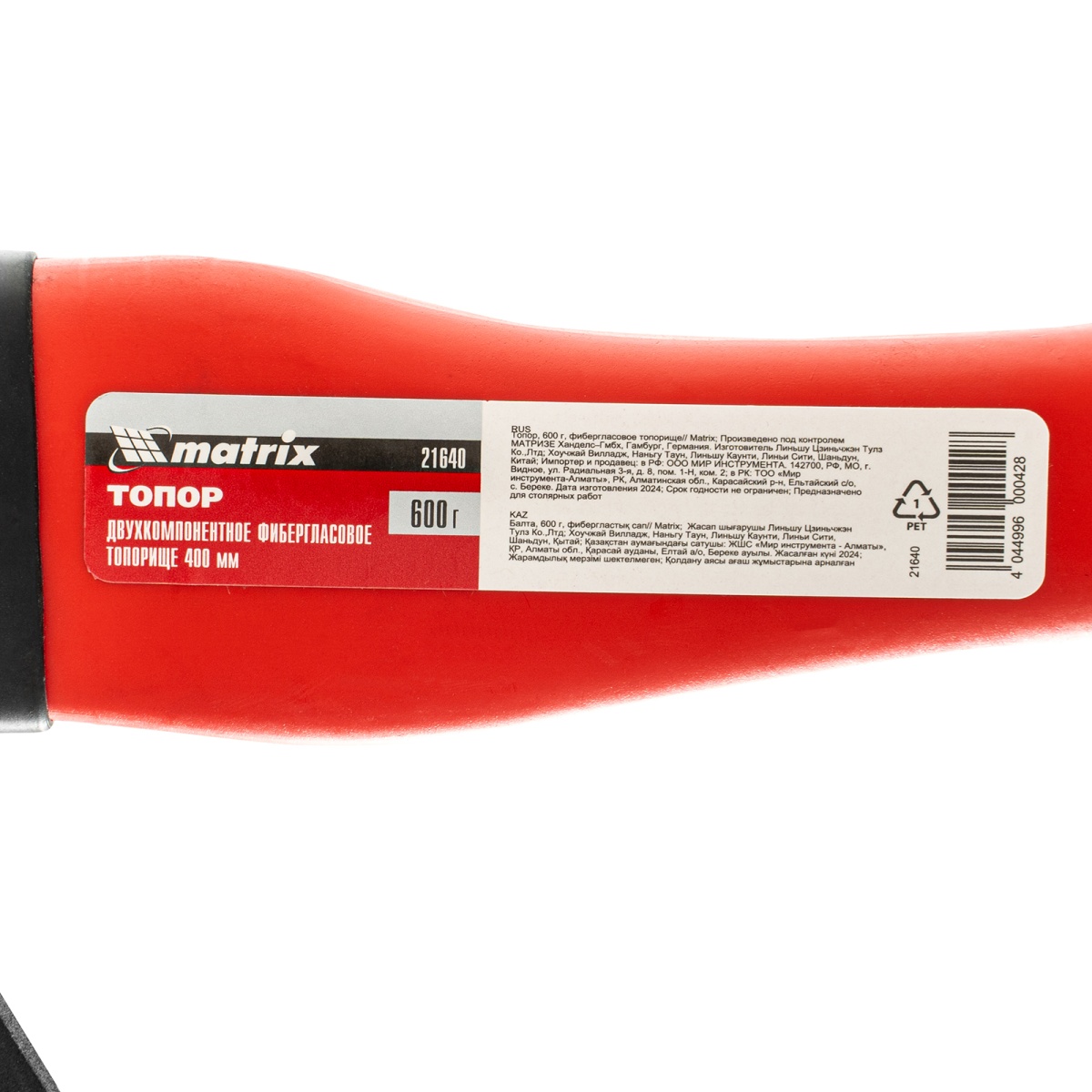 Топор, 600 г, фибергласовое топорище Matrix