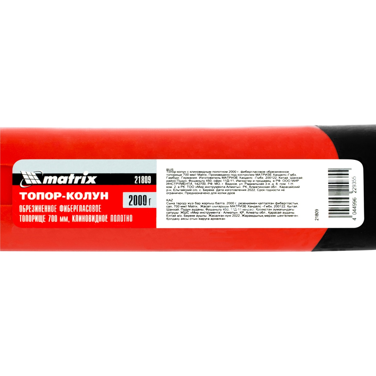 Купить Топор-колун с клиновидным полотном 2000 г, фибергласовое обрезиненное топорище 700 мм Matrix V7214 по лучшей цене с доставкой - интернет магазин №1 в России