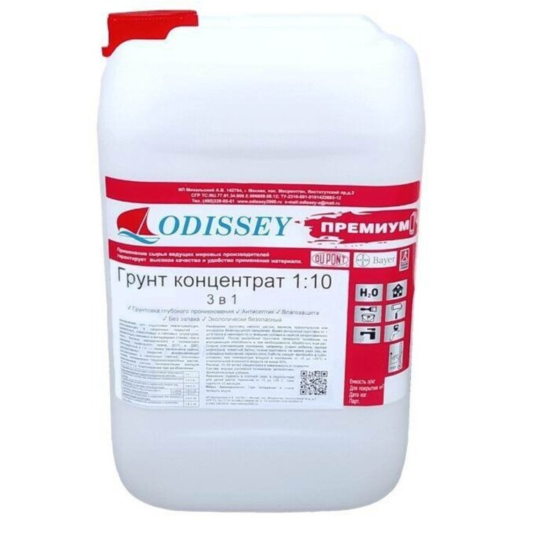 Купить Грунт-концентрат глубокого проникновения ODISSEY универсальный 3 в 1 с антисептиком 10 кг по лучшей цене с доставкой - интернет магазин №1 в России