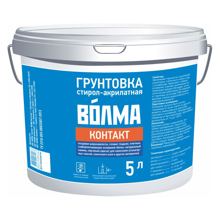 Купить Грунтовка Волма Контакт 5 л по лучшей цене с доставкой - интернет магазин №1 в России