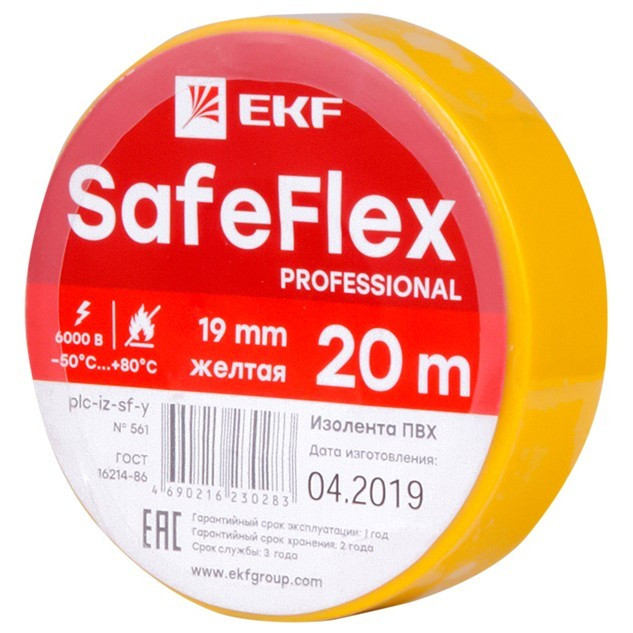 Купить Изолента ПВХ EKF SafeFlex 19х0,15 мм 20 м желтая по лучшей цене с доставкой - интернет магазин №1 в России