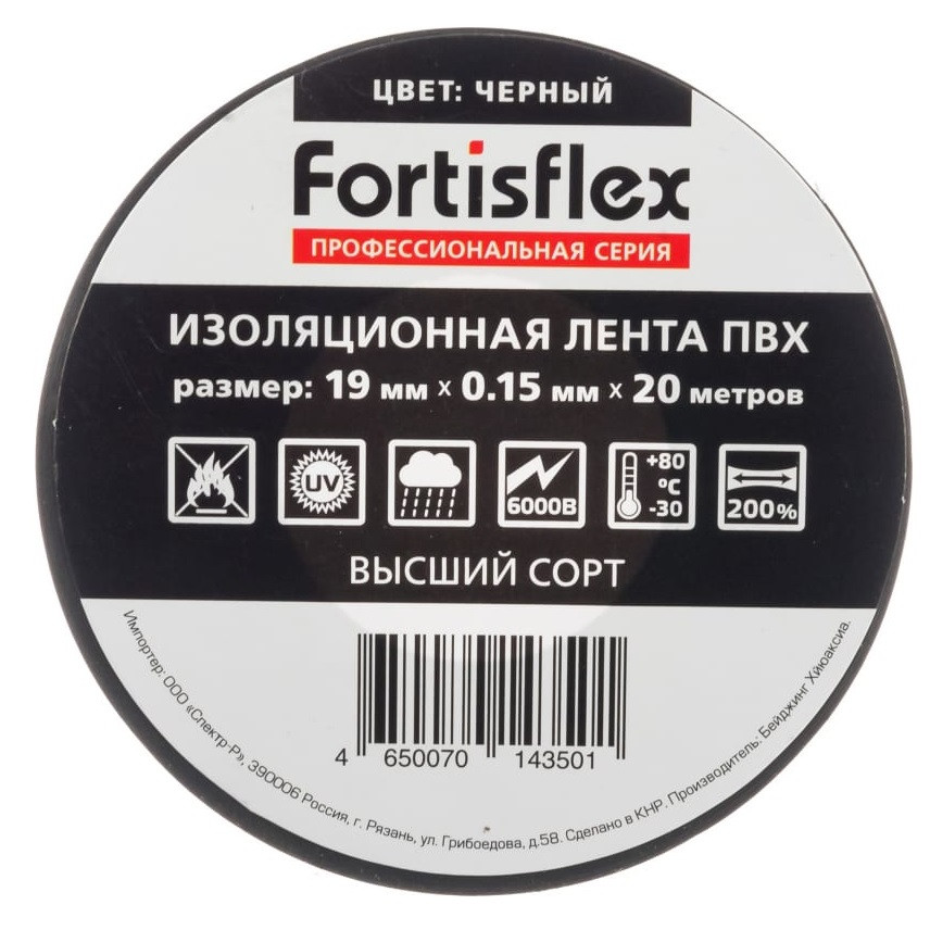 Купить Изолента ПВХ Fortisflex 71236 черная 19 мм 20 м по лучшей цене с доставкой - интернет магазин №1 в России