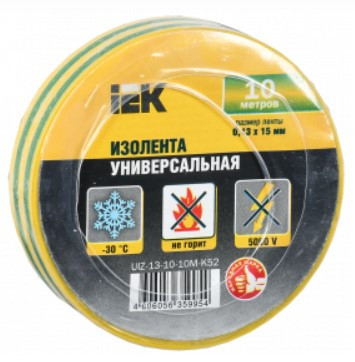 Купить Изолента ПВХ IEK UIZ-13-10-10M-K52 0,13х15мм 10м желто-зеленая по лучшей цене с доставкой - интернет магазин №1 в России