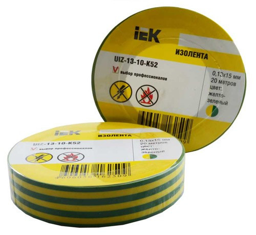 Купить Изолента ПВХ IEK UIZ-13-10-K52 желто-зеленая 15 мм 20 м по лучшей цене с доставкой - интернет магазин №1 в России