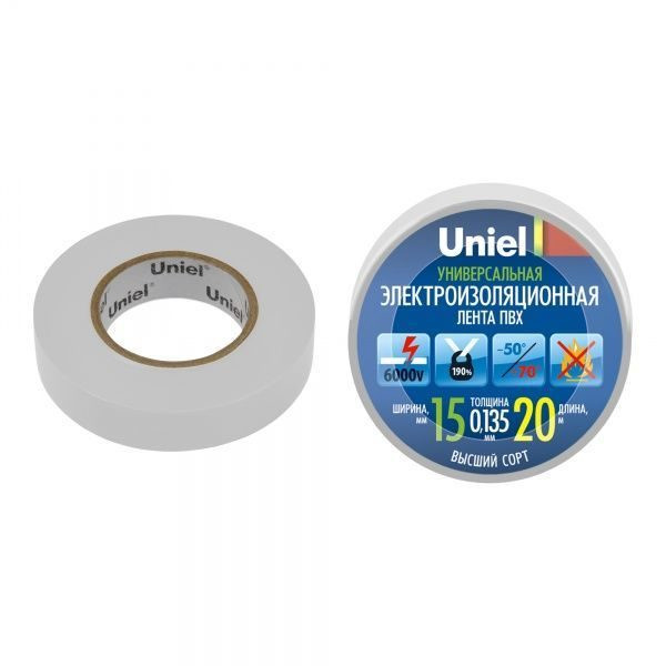Купить Изолента ПВХ Uniel UIT-135P 15 мм белая 20 м по лучшей цене с доставкой - интернет магазин №1 в России