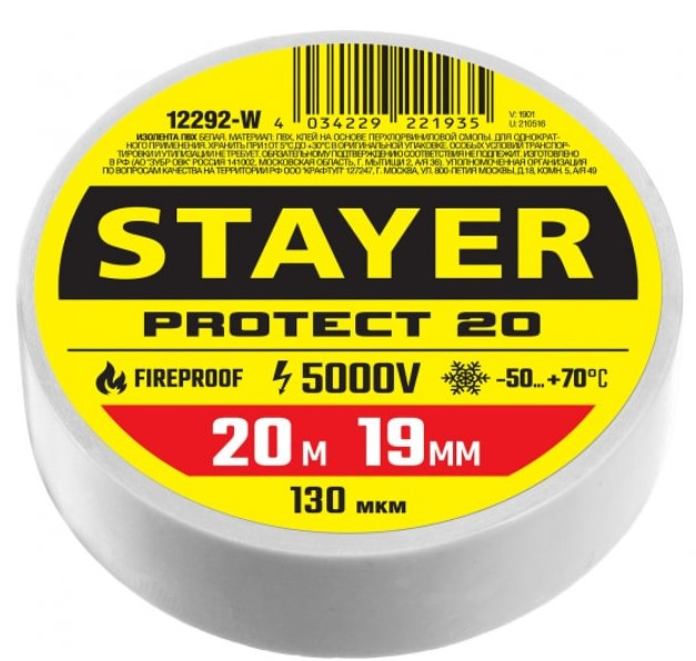 Купить Изолента Stayer Protect-20 12292-W 19 мм белая 20 м по лучшей цене с доставкой - интернет магазин №1 в России