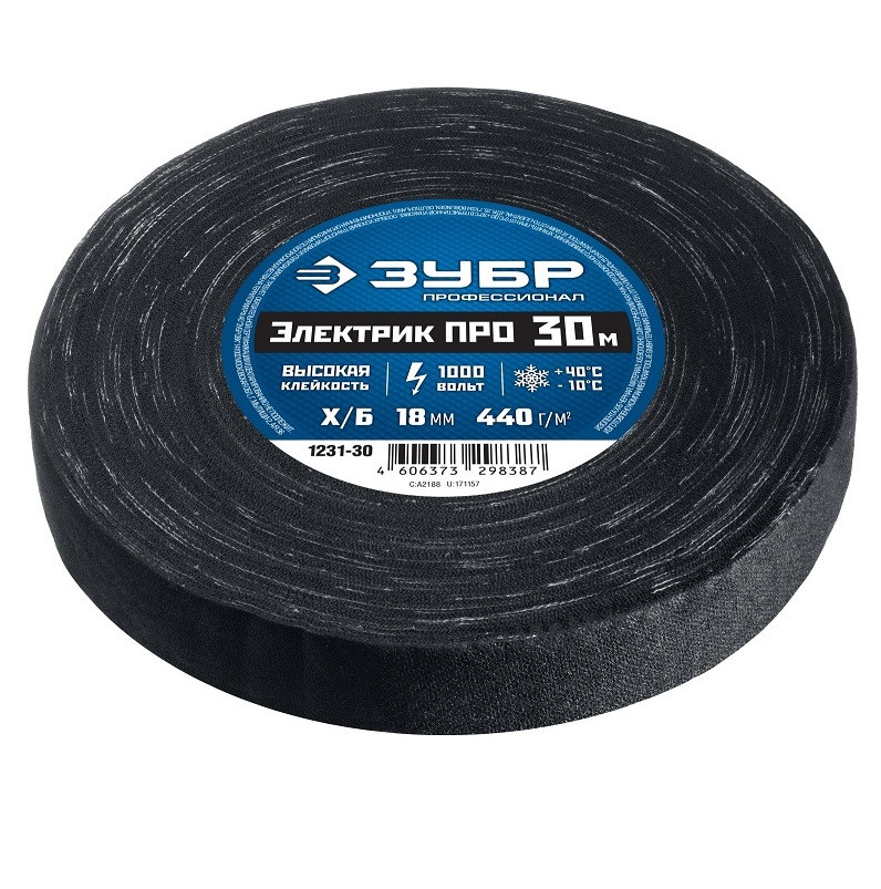 Купить Изолента Зубр Электрик Про 1231-30 черная 18 мм 30 м по лучшей цене с доставкой - интернет магазин №1 в России