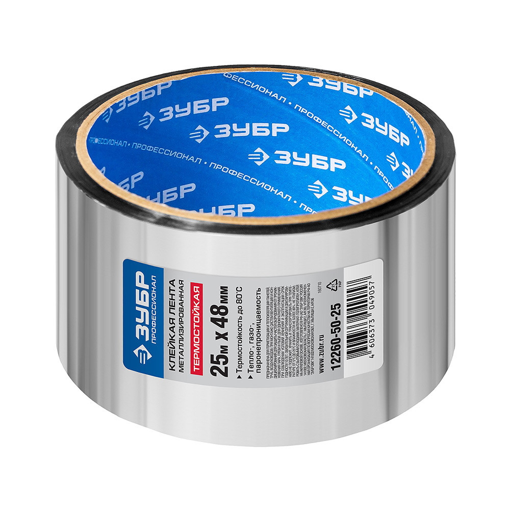 Купить Лента клеящая Зубр 12260-50-25 металлизированная 48 мм 25 м по лучшей цене с доставкой - интернет магазин №1 в России
