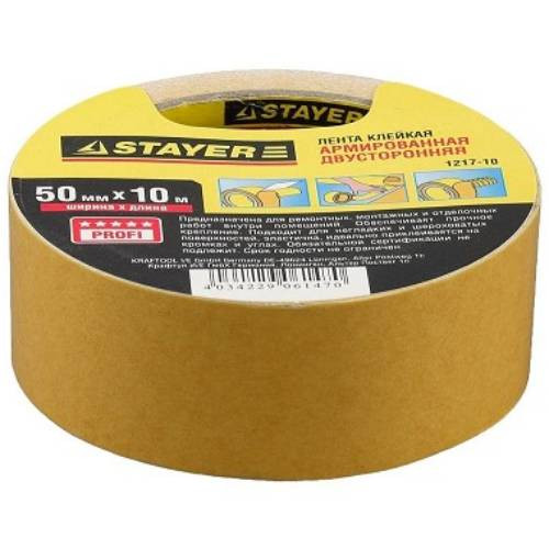 Купить Лента клейкая двухсторонняя Stayer Profi 1217-10 50 мм 10 м по лучшей цене с доставкой - интернет магазин №1 в России