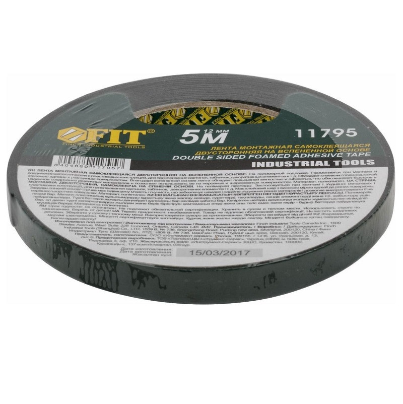 Купить Лента клейкая Fit 11795 двухсторонняя черная 12 мм 5 м по лучшей цене с доставкой - интернет магазин №1 в России