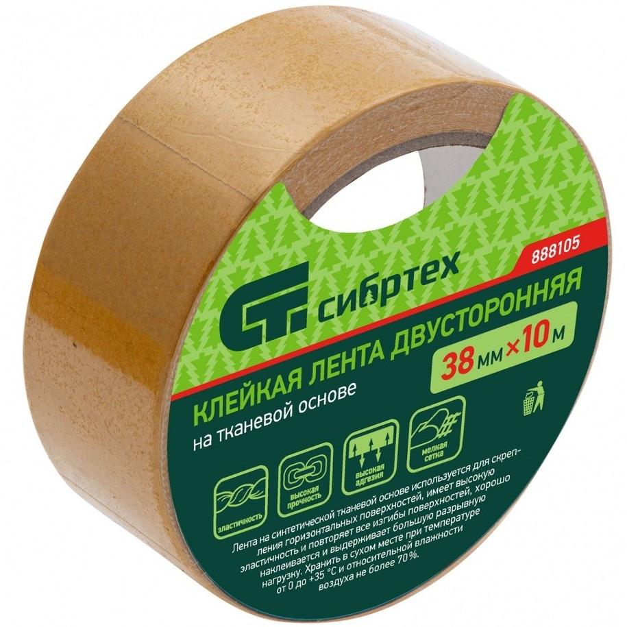 Купить Лента клейкая Сибртех 888105 двусторонняя 38 мм 10 м по лучшей цене с доставкой - интернет магазин №1 в России