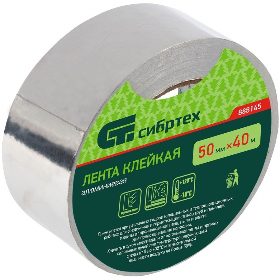 Купить Лента клейкая Сибртех 888145 алюминиевая 50 мм 40 м по лучшей цене с доставкой - интернет магазин №1 в России