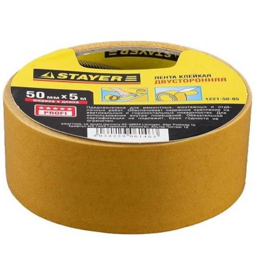 Купить Лента клейкая Stayer Master 1221-50-05 двухсторонняя 5 м по лучшей цене с доставкой - интернет магазин №1 в России
