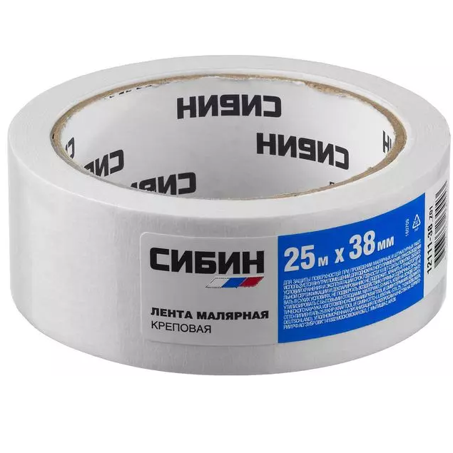 Купить Лента малярная Cибин 12111-38_z01 креповая 38 мм 25 м по лучшей цене с доставкой - интернет магазин №1 в России