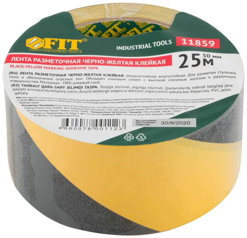Купить Лента разметочная самоклеющаяся Fit 11859 черно-желтая 50 мм 25 м по лучшей цене с доставкой - интернет магазин №1 в России