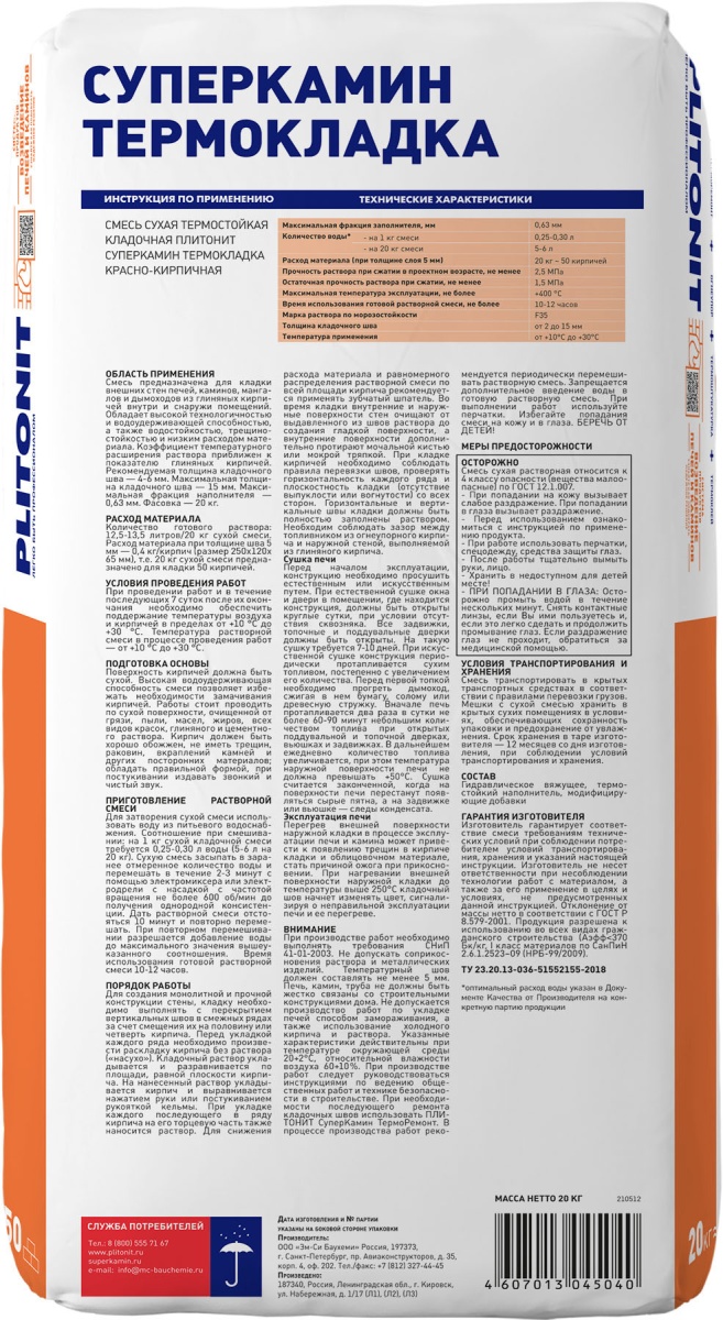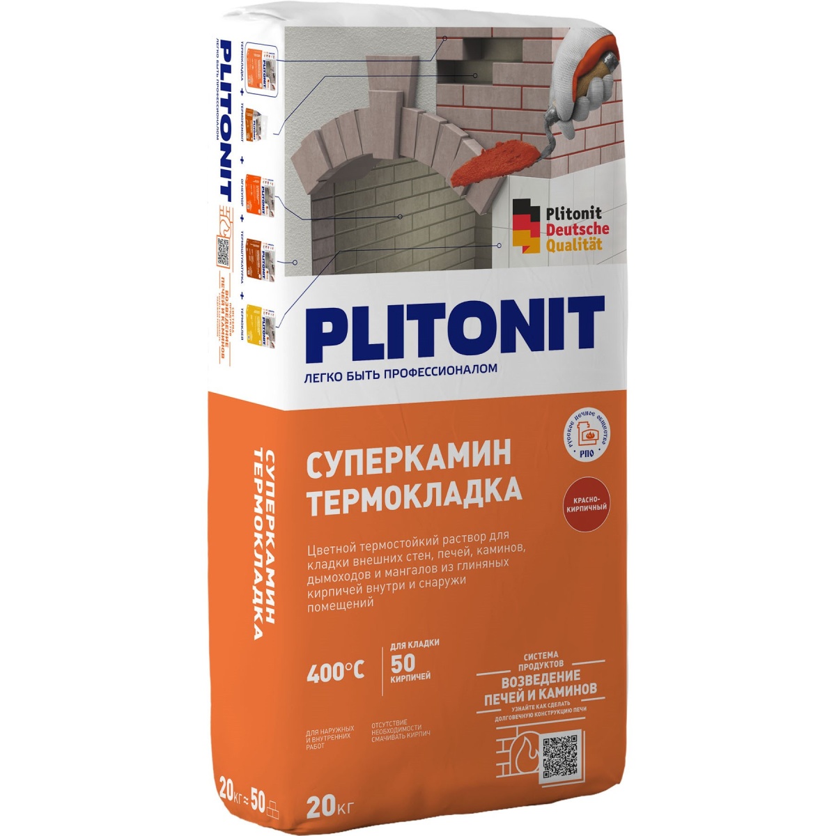Купить Раствор термостойкий Plitonit Суперкамин Термокладка красный 20 кг по лучшей цене с доставкой - интернет магазин №1 в России