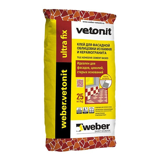 Купить Клей для фасадной облицовки Weber.Vetonit Ultra Fix 25 кг по лучшей цене с доставкой - интернет магазин №1 в России