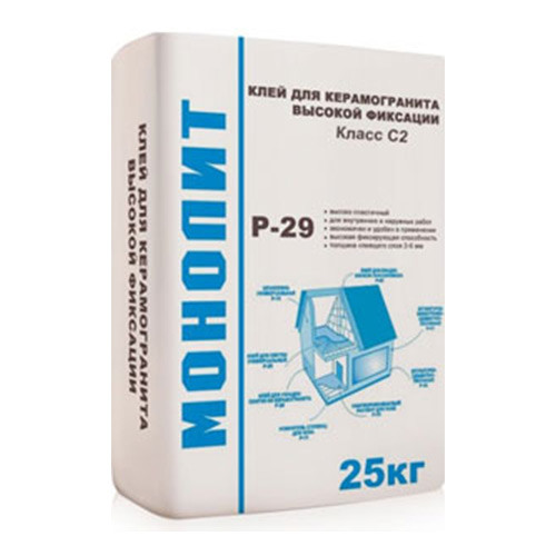 Купить Клей для плитки и керамогранита Монолит Р-29 С2 высокой фиксации 25 кг по лучшей цене с доставкой - интернет магазин №1 в России