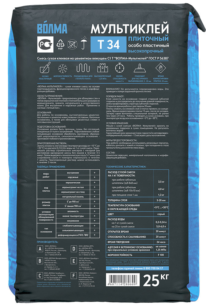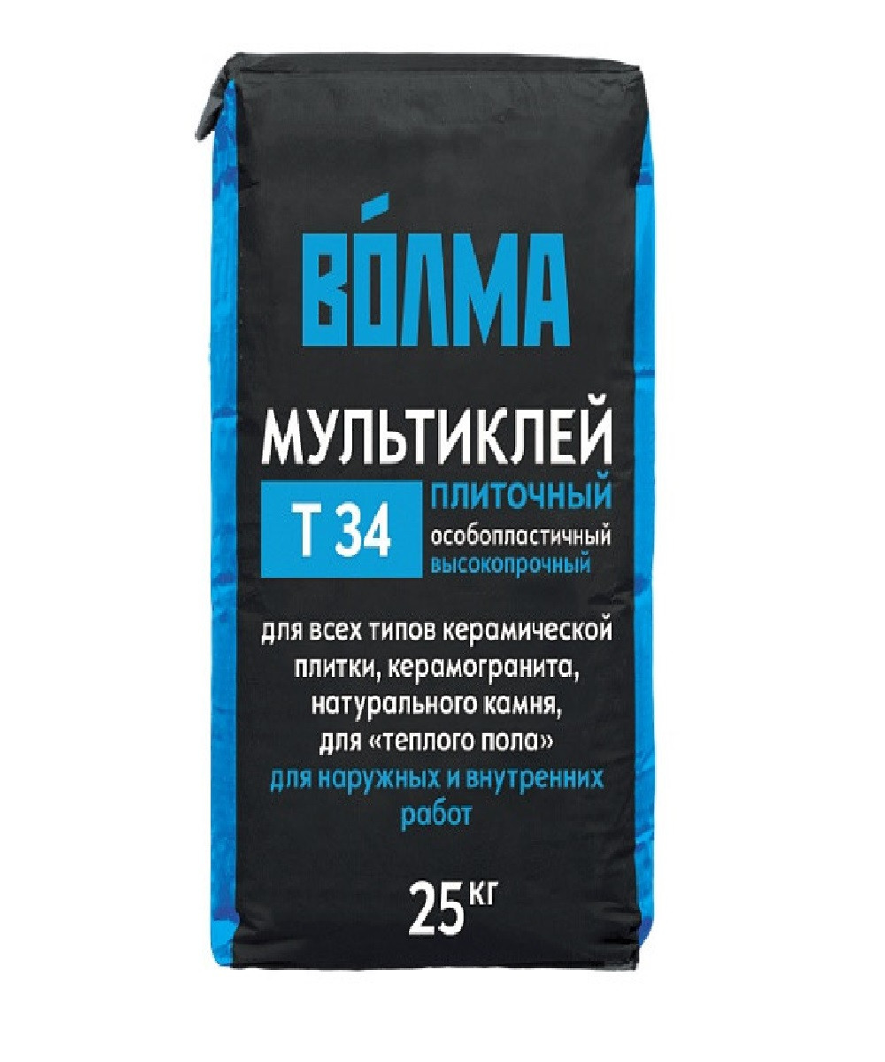 Купить Клей для плитки цементный Волма Мультиклей Т34 25 кг по лучшей цене с доставкой - интернет магазин №1 в России