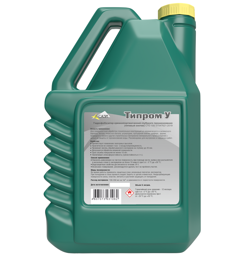 Купить Гидрофобизатор Типром У глубокого проникновения 5 л по лучшей цене с доставкой - интернет магазин №1 в России
