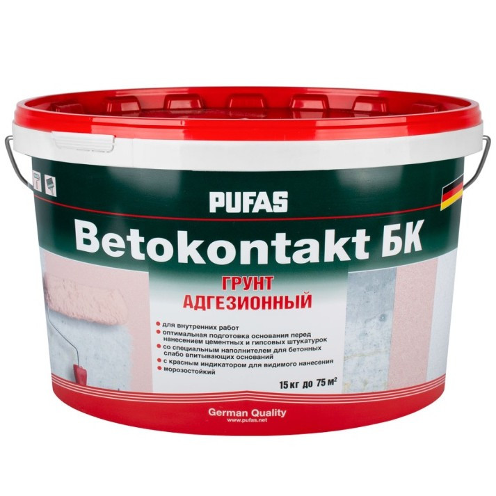 Купить Грунт адгезионный Pufas Betokontakt БК морозостойкий 15 кг/9,2 л по лучшей цене с доставкой - интернет магазин №1 в России