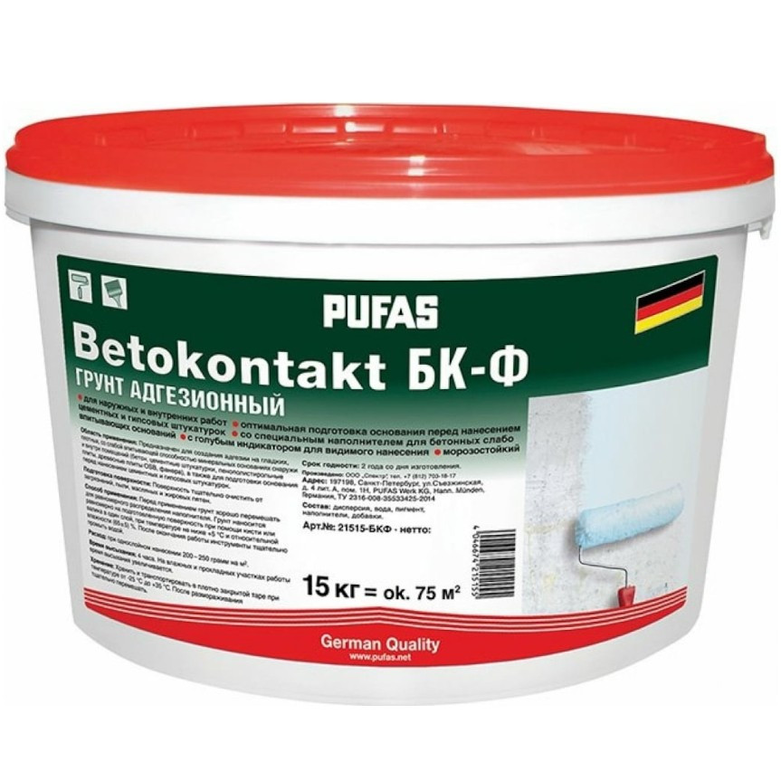 Купить Грунт для повышения адгезии Pufas Бетоконтакт БК-Ф морозостойкий 15 кг/9,2 л по лучшей цене с доставкой - интернет магазин №1 в России