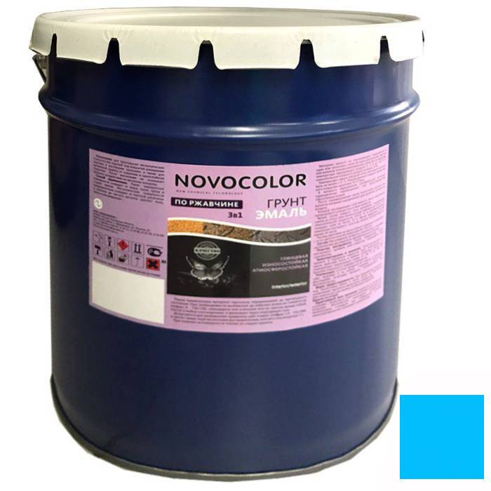 Купить Грунт-эмаль 3 в 1 Novocolor голубой глянцевый 20 кг по лучшей цене с доставкой - интернет магазин №1 в России