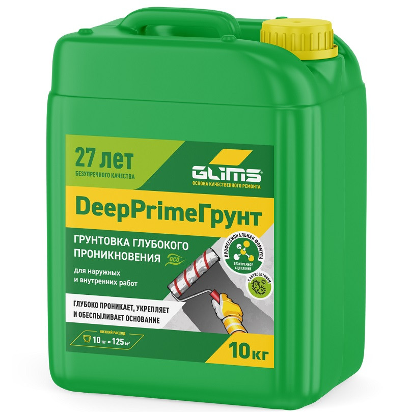 Купить Грунт глубокого проникновения Glims DeepPrimeГрунт с антисептиком 10 кг по лучшей цене с доставкой - интернет магазин №1 в России