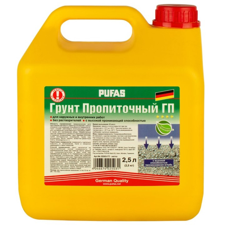 Купить Грунт глубокого проникновения Pufas Пропиточный ГП с защитой от плесени морозостойкий 2,5 л по лучшей цене с доставкой - интернет магазин №1 в России