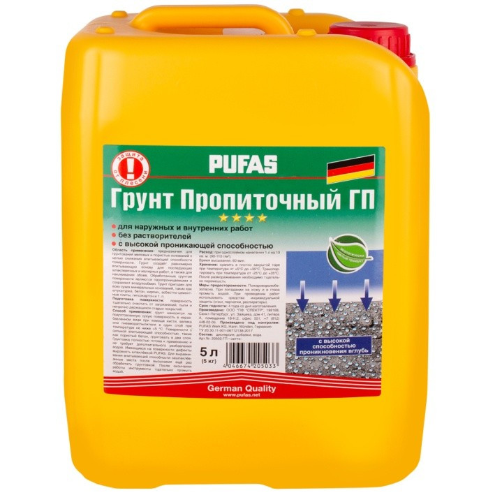 Купить Грунт глубокого проникновения Pufas Пропиточный ГП с защитой от плесени морозостойкий 5 л по лучшей цене с доставкой - интернет магазин №1 в России