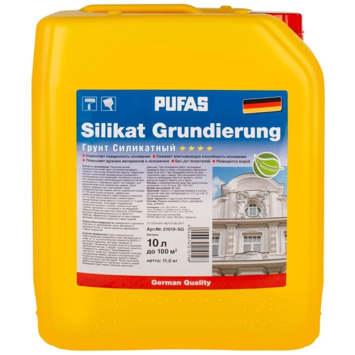Купить Грунт силикатный Pufas Silikat Grundierung 11 кг/10 л по лучшей цене с доставкой - интернет магазин №1 в России