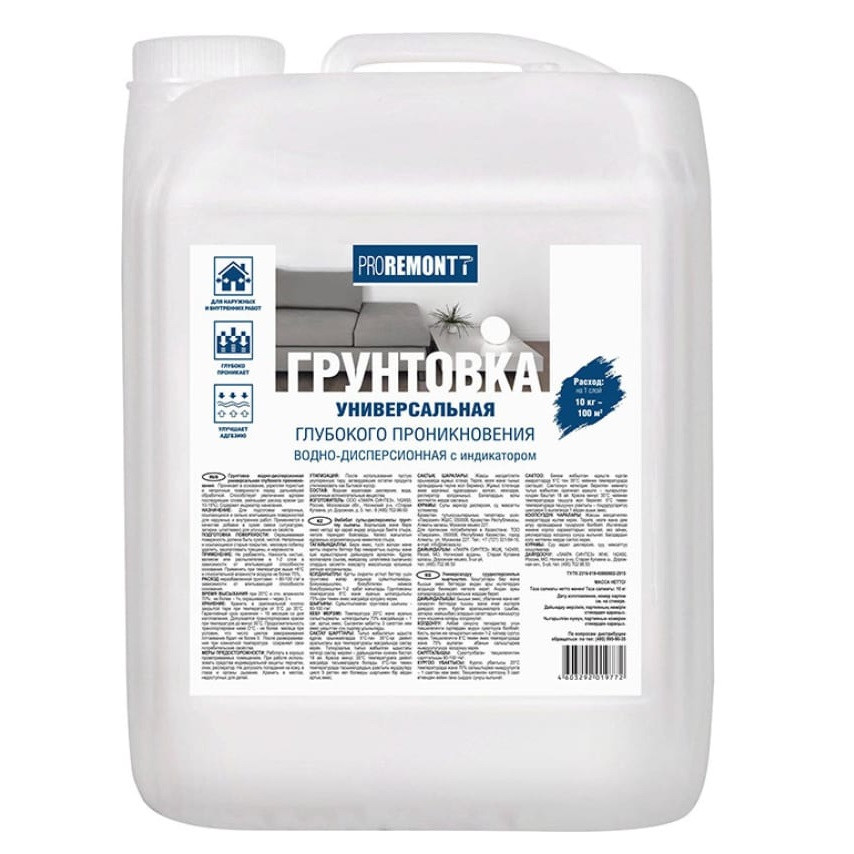 Купить Грунт универсальный Proremontt с индикатором 10 кг по лучшей цене с доставкой - интернет магазин №1 в России
