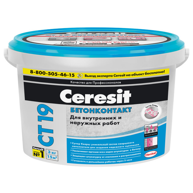Купить Грунтовка Ceresit Бетонконтакт CT 19 3 кг по лучшей цене с доставкой - интернет магазин №1 в России