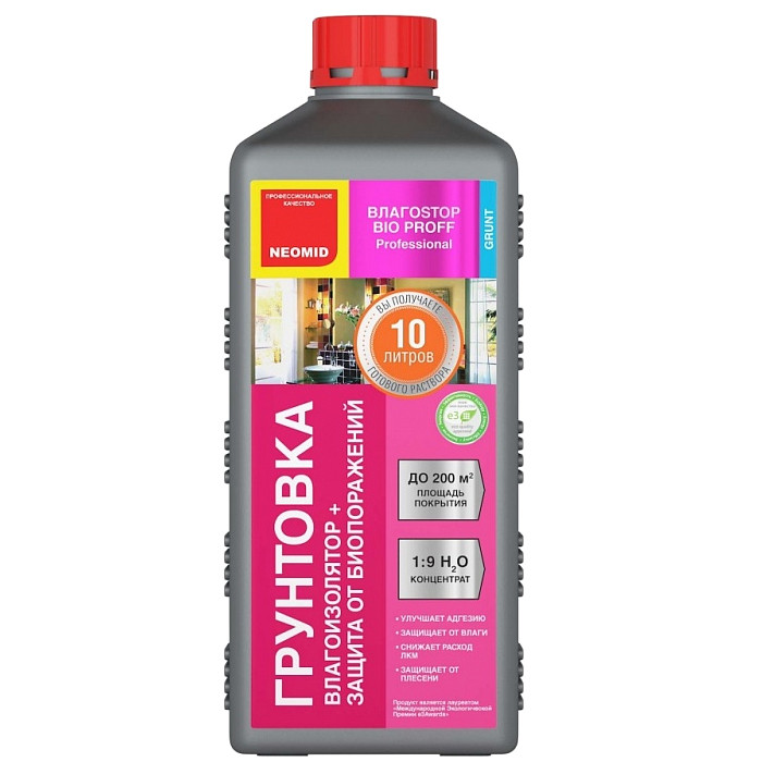 Купить Грунтовка Neomid ВлагоStop Bio Proff 1 л по лучшей цене с доставкой - интернет магазин №1 в России