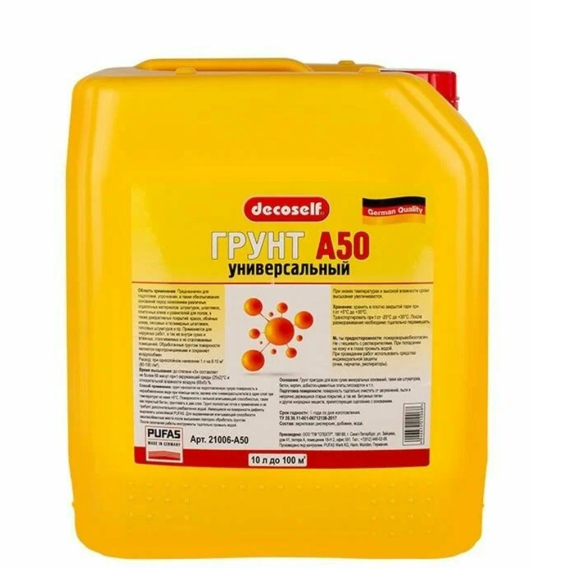 Купить Грунтовка пропиточная универсальная Pufas Decoself A50 морозостойкая 10 л/10 кг по лучшей цене с доставкой - интернет магазин №1 в России