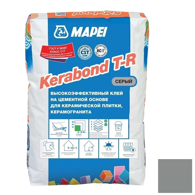 Купить Клей для плитки и керамогранита Mapei Kerabond T-R серый 25 кг по лучшей цене с доставкой - интернет магазин №1 в России