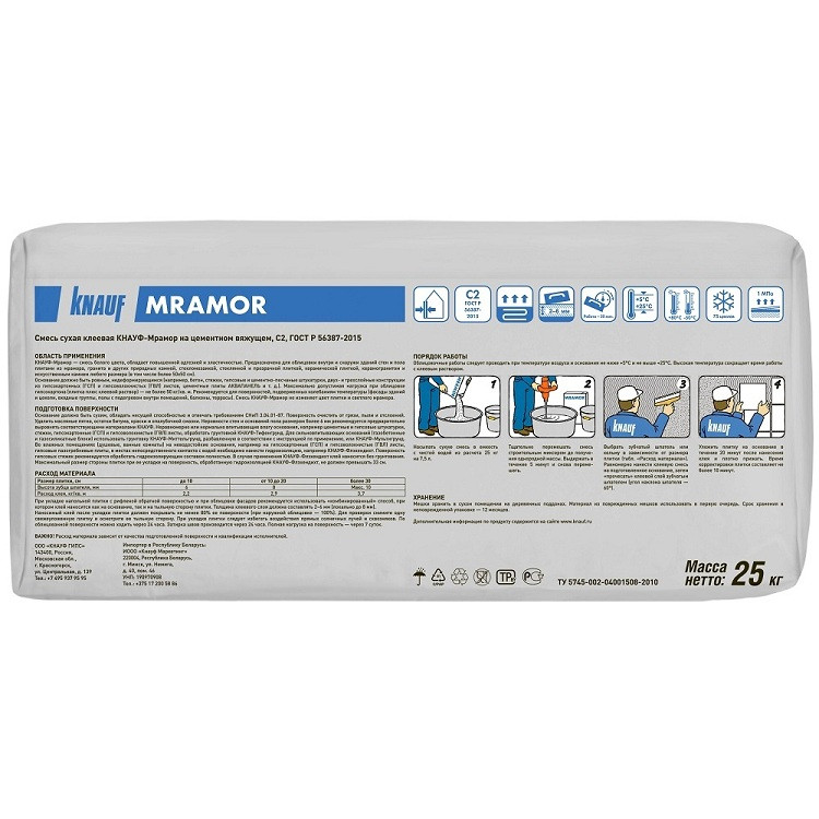 Купить Клей для плитки Knauf Мрамор 25 кг по лучшей цене с доставкой - интернет магазин №1 в России