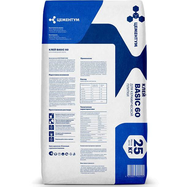 Купить Клей для плитки Цементум Basic 60 C0T 25 кг по лучшей цене с доставкой - интернет магазин №1 в России