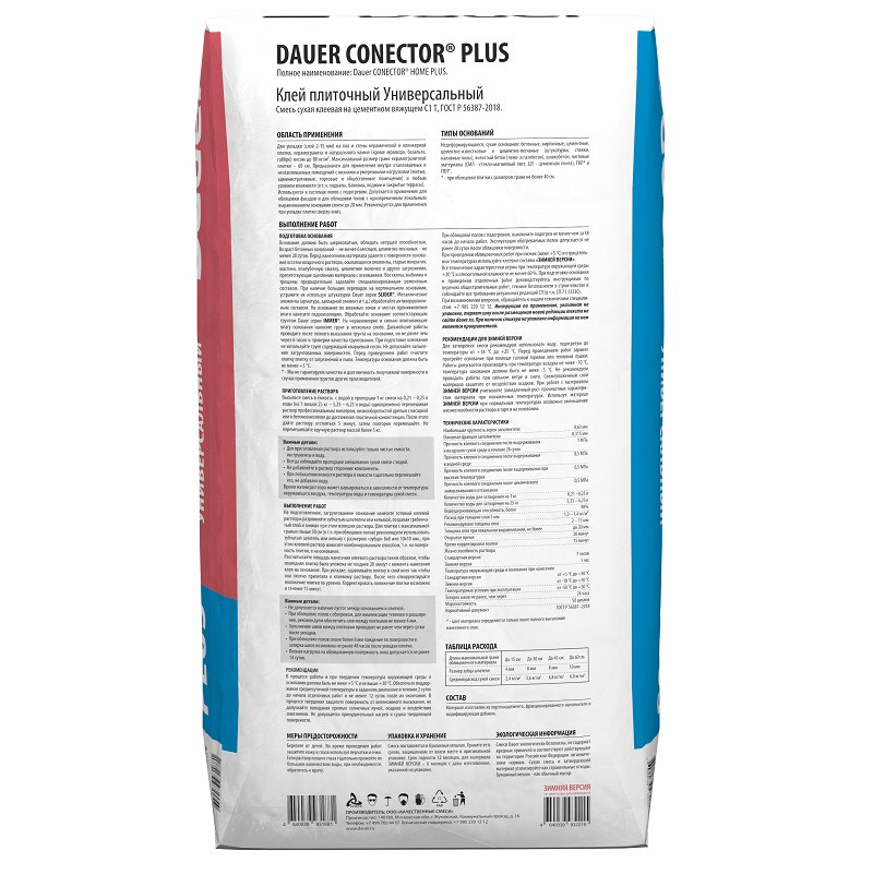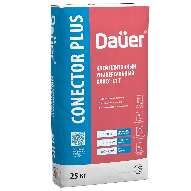 Купить Клей плиточный Dauer Conector Home Plus универсальный 25 кг по лучшей цене с доставкой - интернет магазин №1 в России