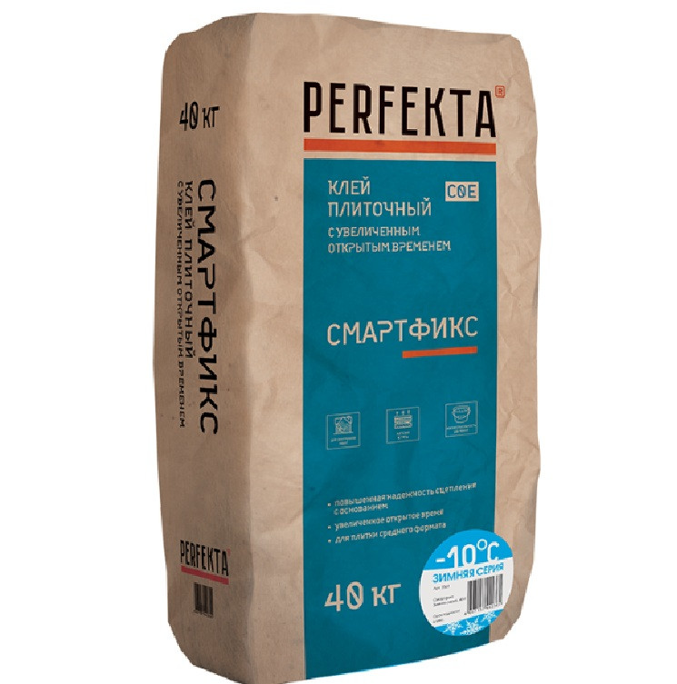 Купить Клей плиточный с увеличенным открытым временем Perfekta Смартфикс Зимняя серия C0 E 40 кг по лучшей цене с доставкой - интернет магазин №1 в России