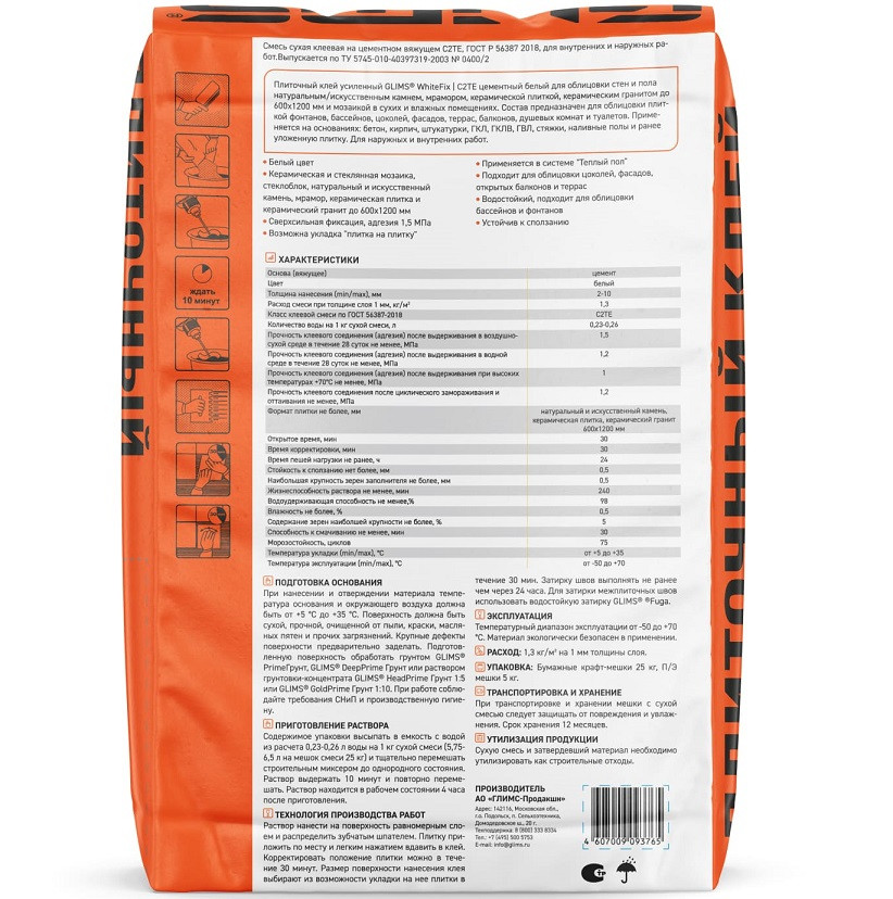 Купить Клей профессиональный Glims WhiteFix 25 кг по лучшей цене с доставкой - интернет магазин №1 в России