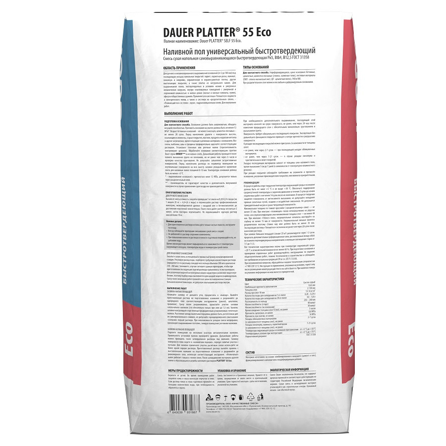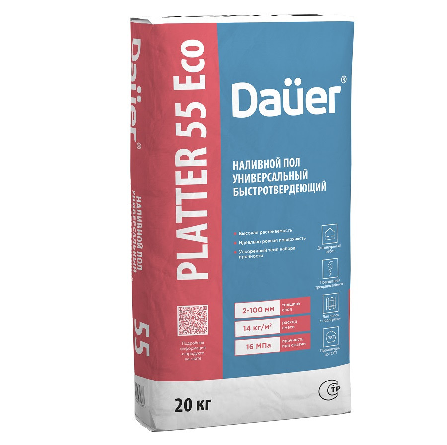 Купить Пол наливной Dauer Platter Self 55 Eco универсальный быстротвердеющий 20 кг по лучшей цене с доставкой - интернет магазин №1 в России
