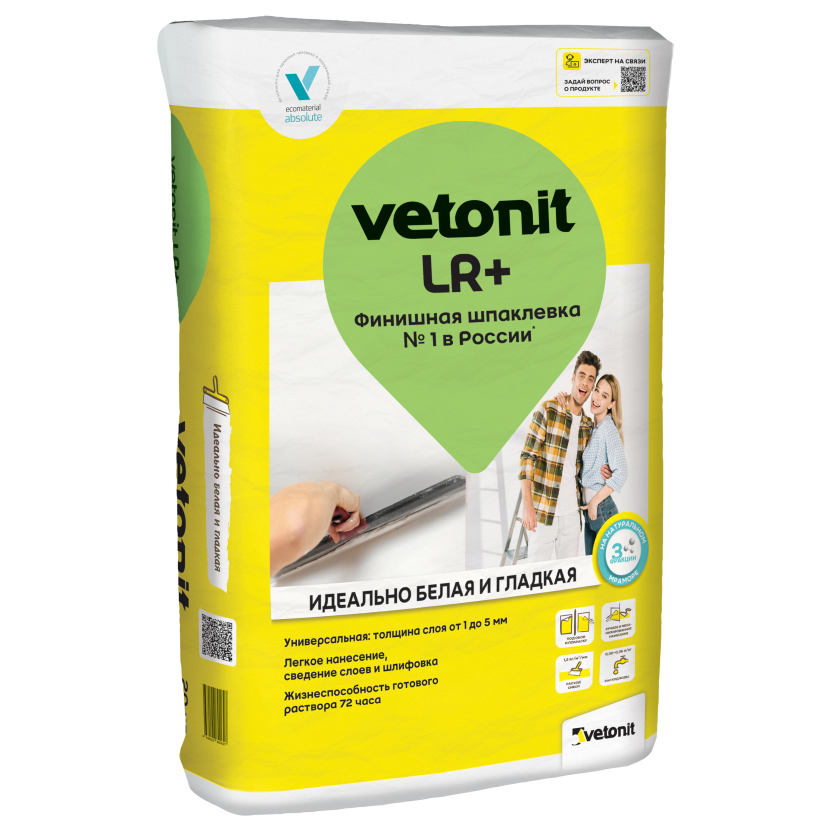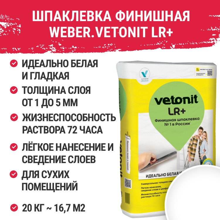 Купить Шпатлевка финишная полимерная Weber.Vetonit LR+ белая 20 кг по лучшей цене с доставкой - интернет магазин №1 в России