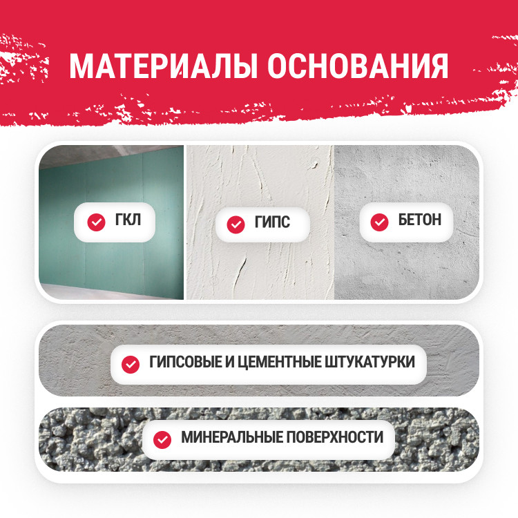 Материал основания Бетон, Штукатурка, Гипсокартон, Керамзитные блоки, Пеногазобетонный блок