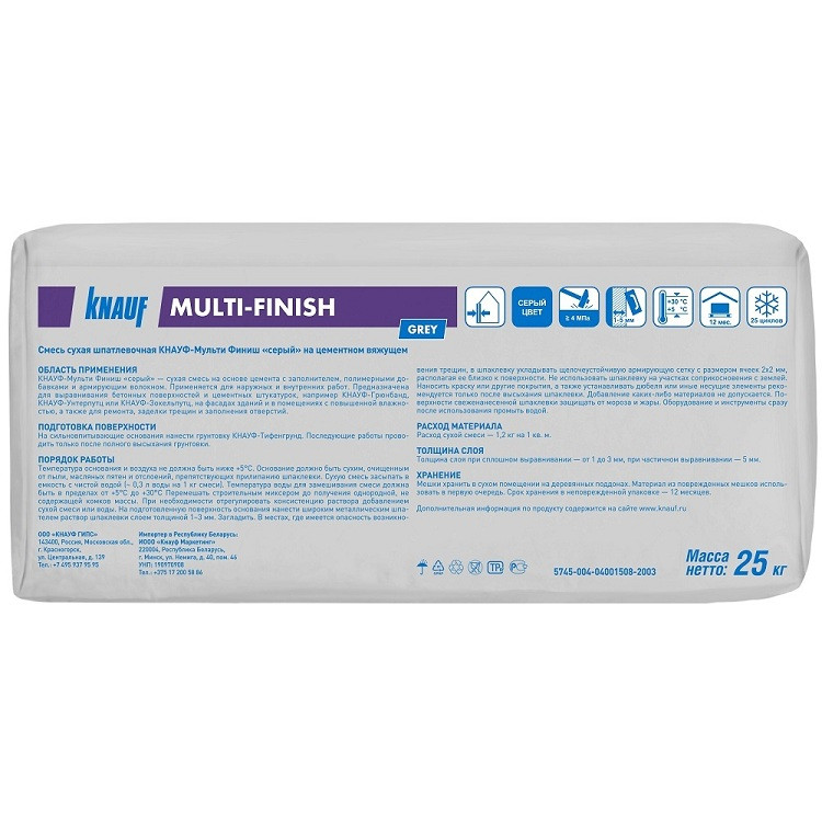 Купить Шпатлевка цементная фасадная Knauf Мульти-финиш серая 25 кг по лучшей цене с доставкой - интернет магазин №1 в России