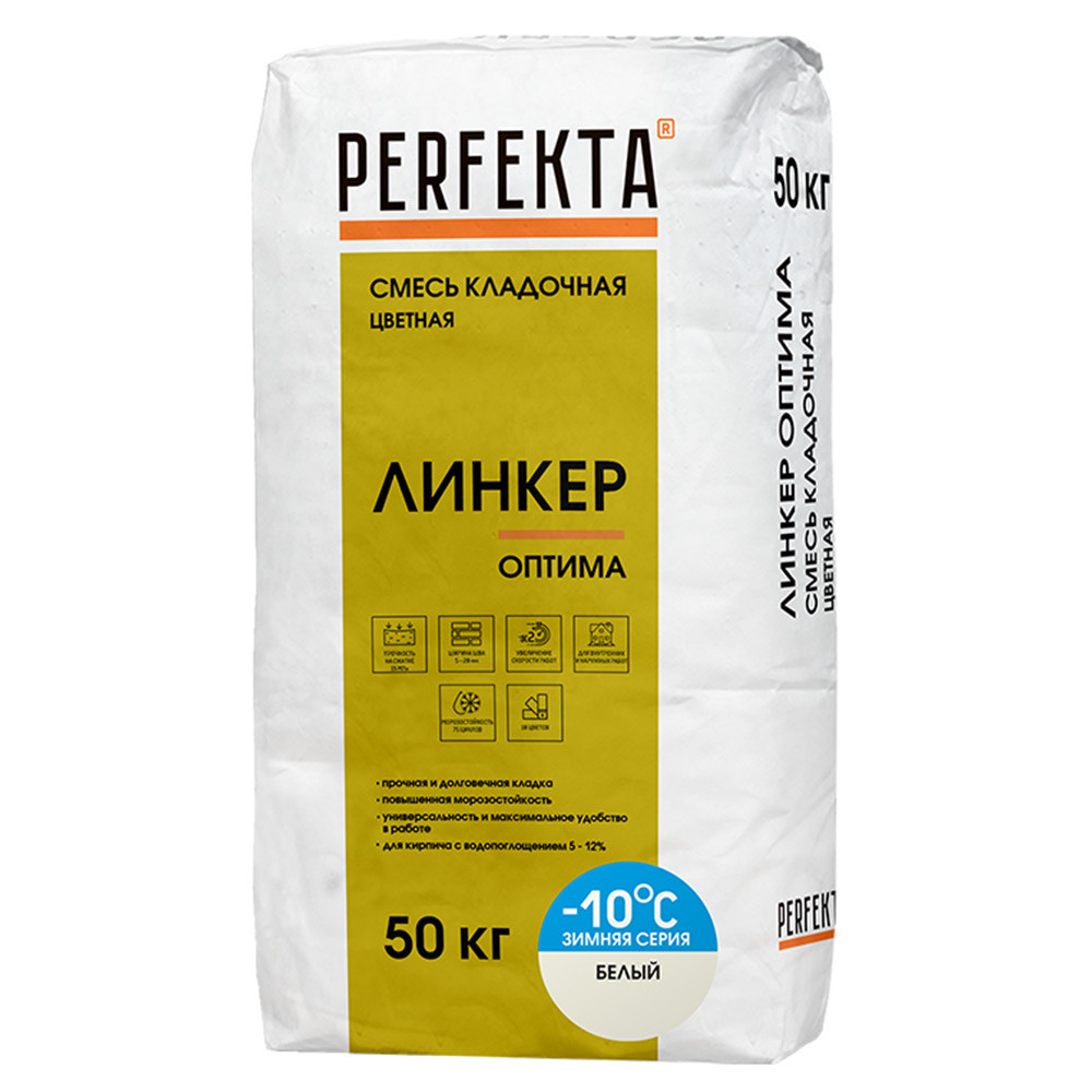 Купить Смесь кладочная Perfekta Линкер Оптима зимняя белый 50 кг по лучшей цене с доставкой - интернет магазин №1 в России