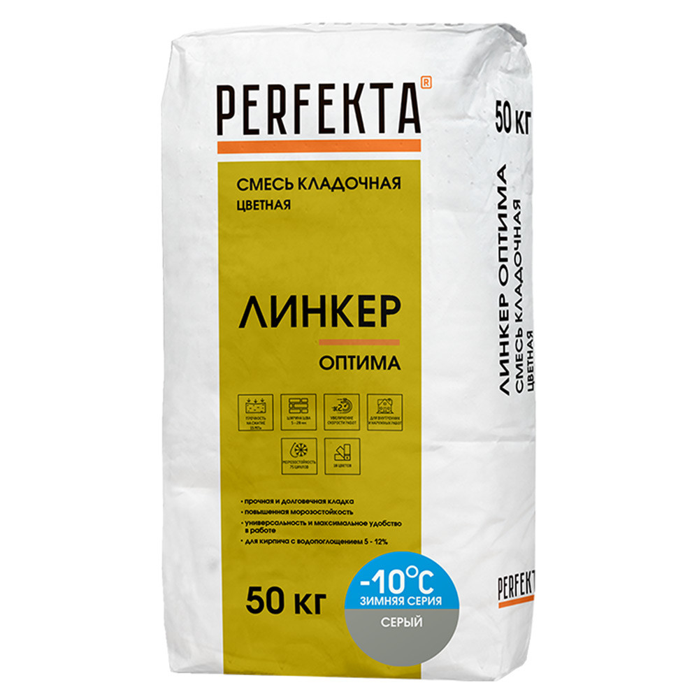 Купить Смесь кладочная Perfekta Линкер Оптима зимняя серый 50 кг по лучшей цене с доставкой - интернет магазин №1 в России