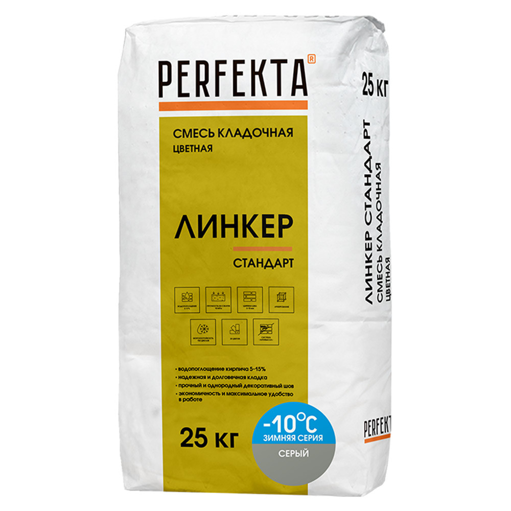 Купить Смесь кладочная Perfekta Линкер Стандарт зимняя серия серая 25 кг по лучшей цене с доставкой - интернет магазин №1 в России