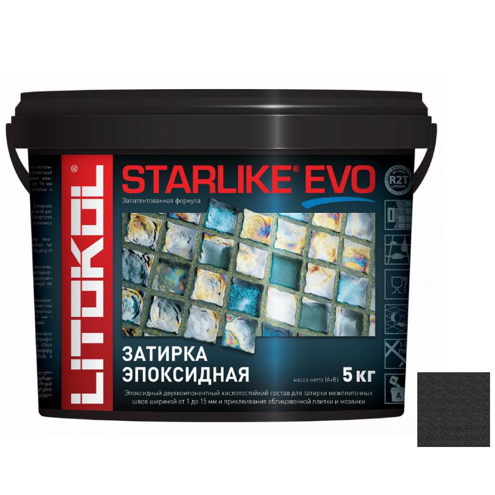 Купить Затирка эпоксидная для швов Litokol Starlike Evo S.145 Nero Carbonio 5 кг по лучшей цене с доставкой - интернет магазин №1 в России